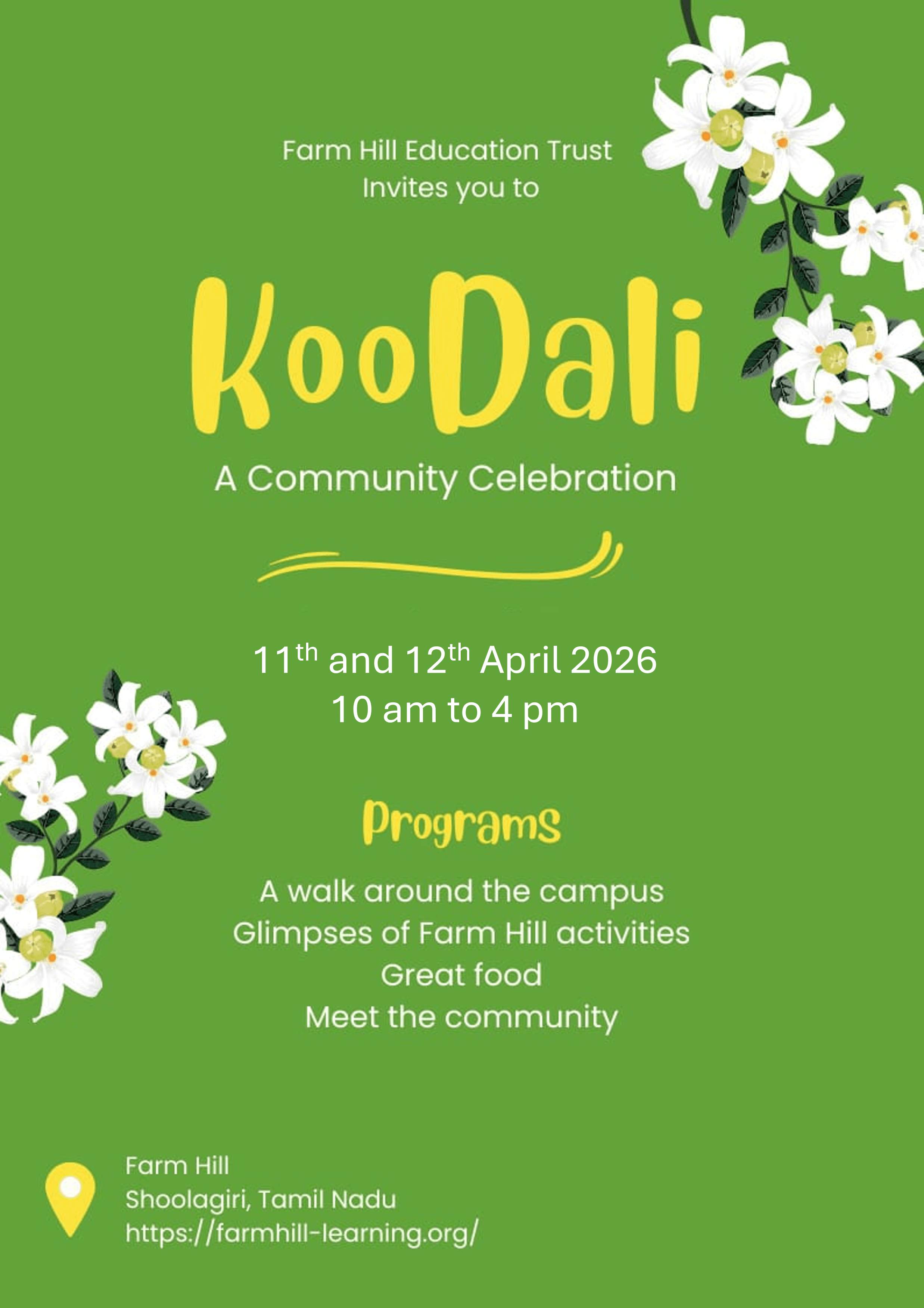 Koodali is the annual gathering of the Farm Hill community - it is the time of the year when all of us come together to celebrate the spirit of the community.